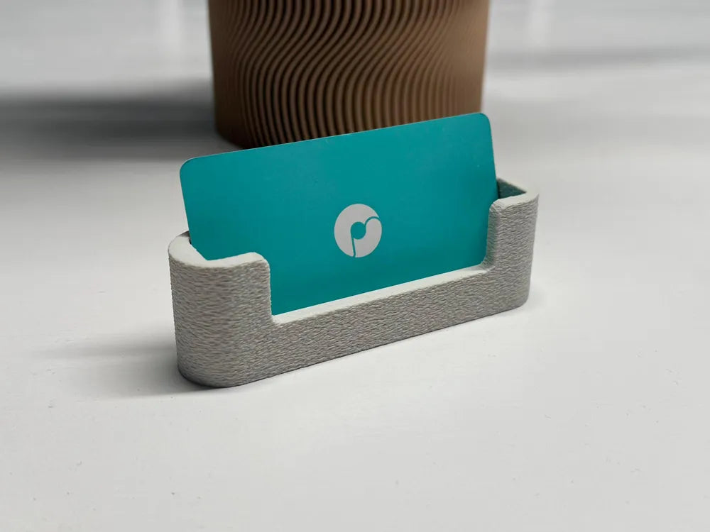 Nowoczesny wizytownik. Dostępny w wersji z japońskim żebrowaniem i z jednolitą, teksturowaną powierzchnią. Mieści wizytówki o szerokości do 92 mm. Spód wizytownika jest oznaczony prostokątem, do którego można przykleić taśmę piankową, aby zapobiec przesuwaniu się wizytownika po biurku.