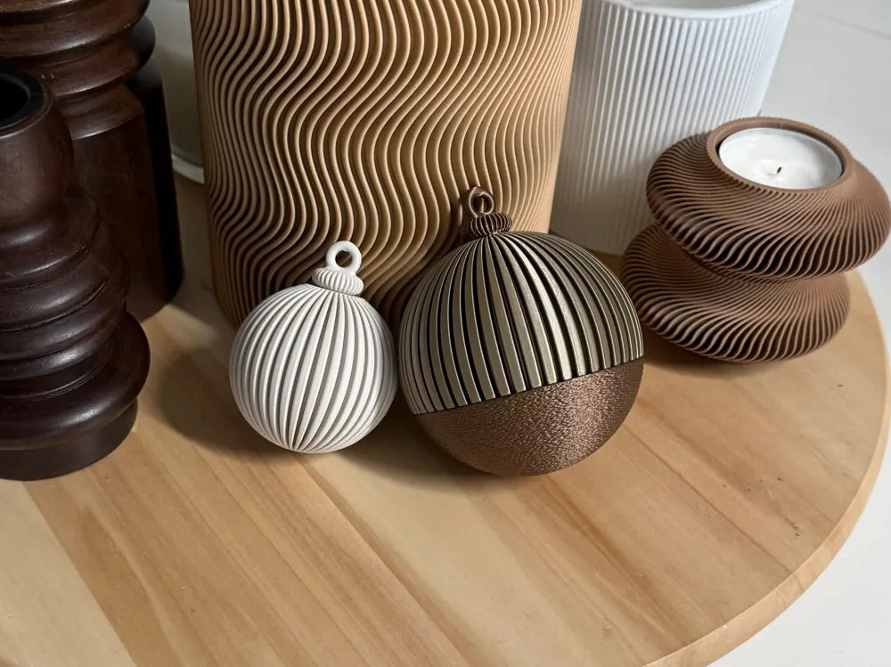 Bombka świąteczna Japandi, doskonała, nowoczesna ozdoba choinki. Bombka może służyć również jako pojemnik lub pudełko na prezent.