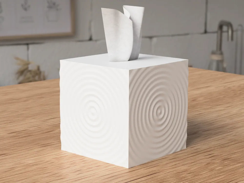 Nowoczesne etui na pudełko chusteczek. Efekt fali inspirowany jest kroplą uderzającą o wodę.